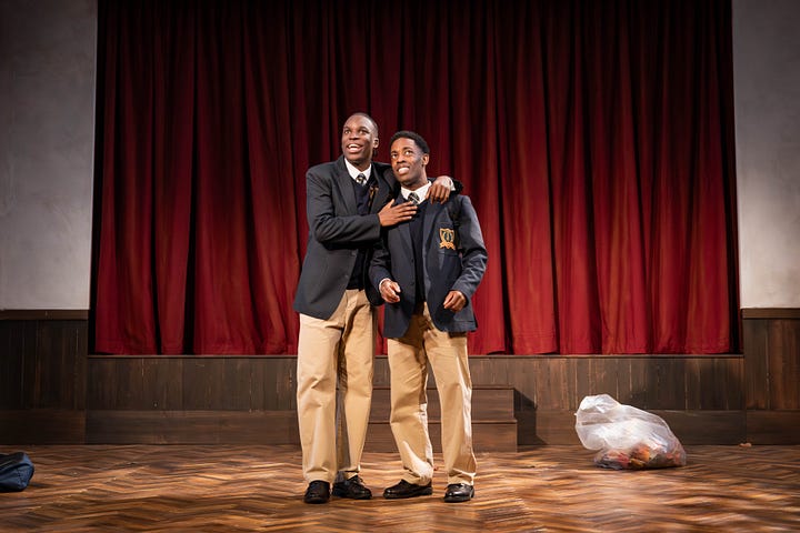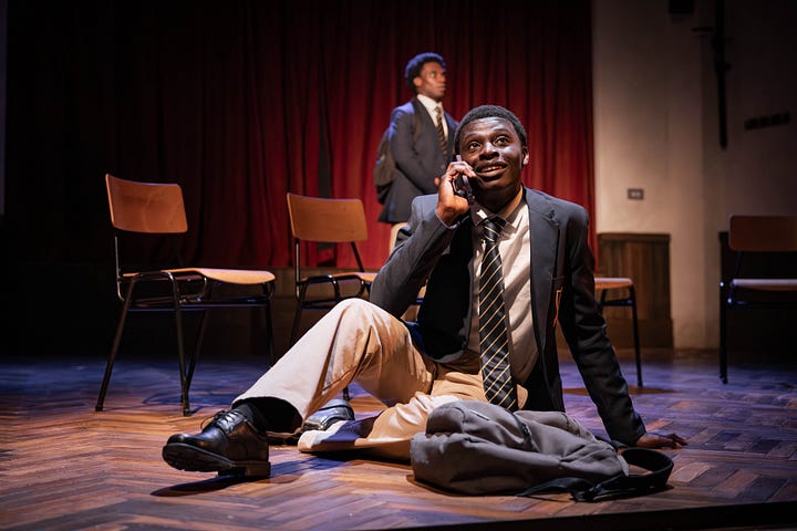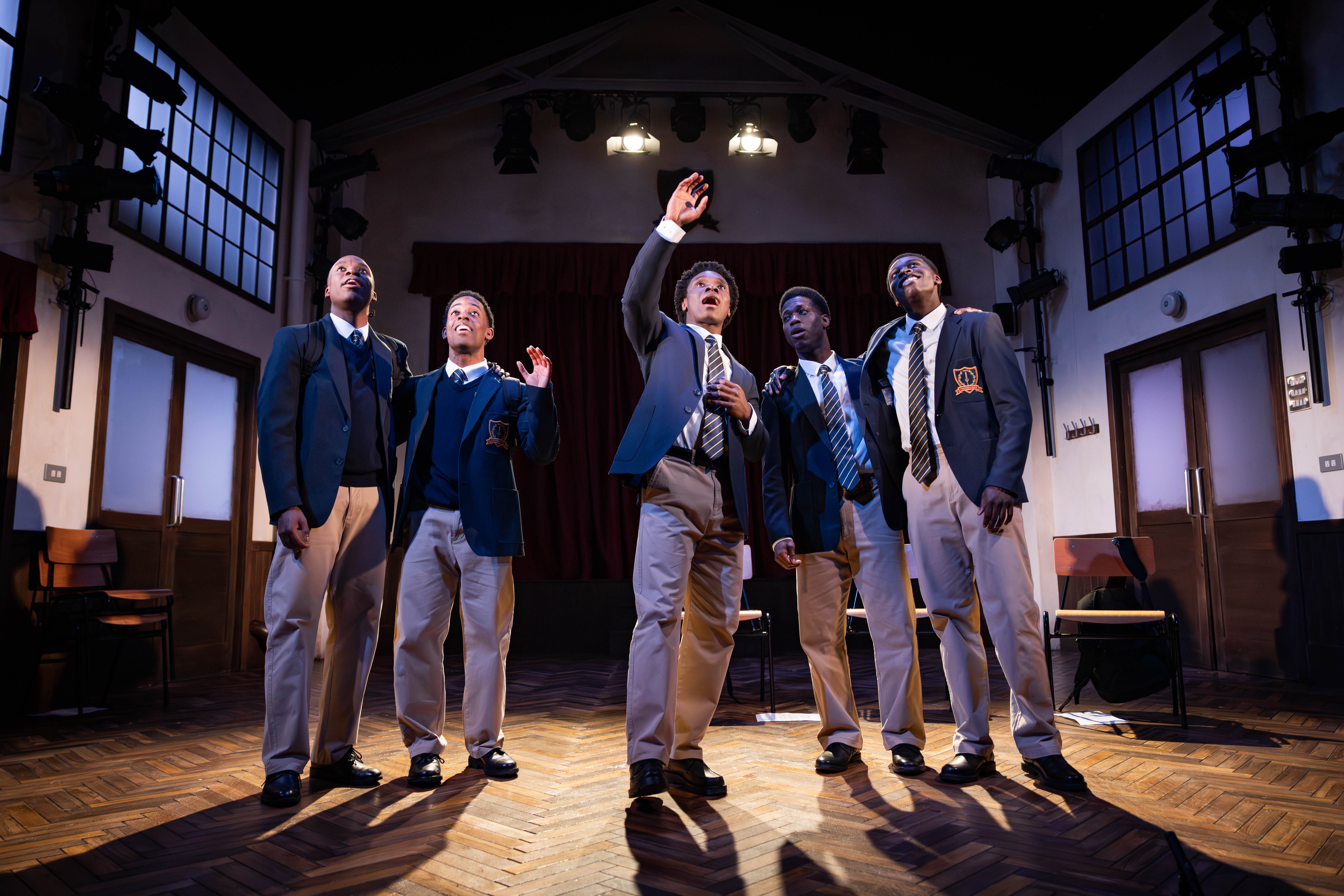 Coming into the young people’s lives from different backgrounds, Headmaster Marrow (Daon Broni) and later, the lukewarmly welcomed Mr Pendleton (Martin Turner) reveal the friction and scrutiny educators in positions of power face at a time when the education system is heavily influenced by class and race. Most remarkably, though, the titular roles, shared by Michael Ahomka-Lindsay (David), Khalid Daley (JR), Terique Jarrett (Pharus), Rabi Kondé (Bobby) and Freddie MacBruce (AJ), are developed from nuanced text into thoroughly layered characterisations. The resultant character portraits are utterly humanising, not to mention the joyous acapella noise that has the power to hold the room as one.