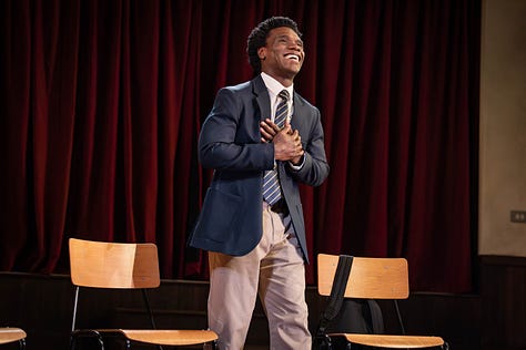 McCraney approaches these themes with a kind of sensitivity that eases the audience in with wholesome, relatable humour, yet effortlessly grasps attention (and breaths) when the narrative makes sharper turns. The choir boys we meet at the start of the play are naïve and playful, with a sense for quick-witted comebacks that makes their dynamic as peers believable, and their lifelong bond as brothers profound.